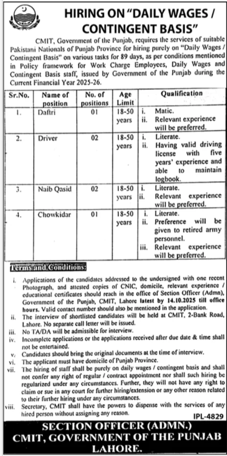 How to Apply for Punjab Chief Minister Inspection Team Jobs 2025