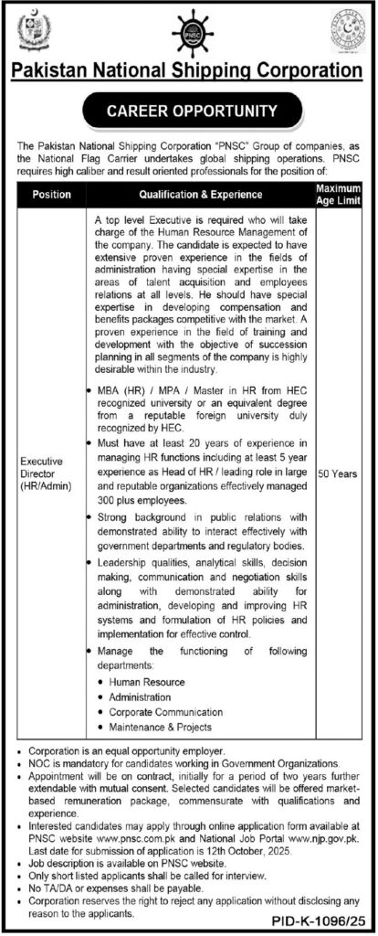 www.pnsc.com.pk PNSC Jobs 2025 For Pakistani Male and Female Apply Online. Are you seeking an excellent career opportunity in the government sector in 2025? PNSC Pakistan National Shipping Corporation Jobs 2025 has announced the latest job openings for the year 2025, providing exciting roles for job seekers across Pakistan. Whether you’re male or female and meet the eligibility criteria, PNSC Pakistan National Shipping Corporation Jobs 2025 offers you the chance to secure a stable and rewarding jobs.