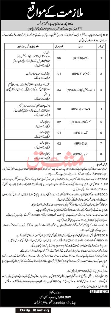 Pakhtunkhwa Energy Development Organization PEDO Jobs 2025 For Pakistani Male and Female Apply Online. Are you seeking an excellent career opportunity in the government sector in 2025? Pakhtunkhwa Energy Development Organization PEDO Jobs 2025 has announced the latest job openings for the year 2025, providing exciting roles for job seekers across Pakistan.