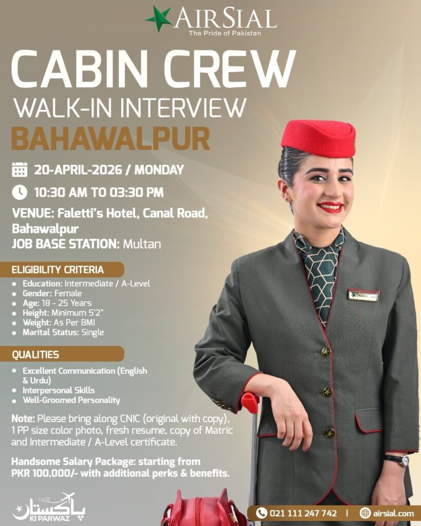 Airsial Cabin Crew jobs 2026 airsial.com/careers opportunities For Pakistani Male and Female Apply Online. Are you seeking an excellent career opportunity in the Private sector in 2026? Airsial Cabin Crew jobs 2026 airsial.com/careers career opportunities Online Apply has announced the latest job openings for the year 2026, providing exciting roles for job seekers across Pakistan.