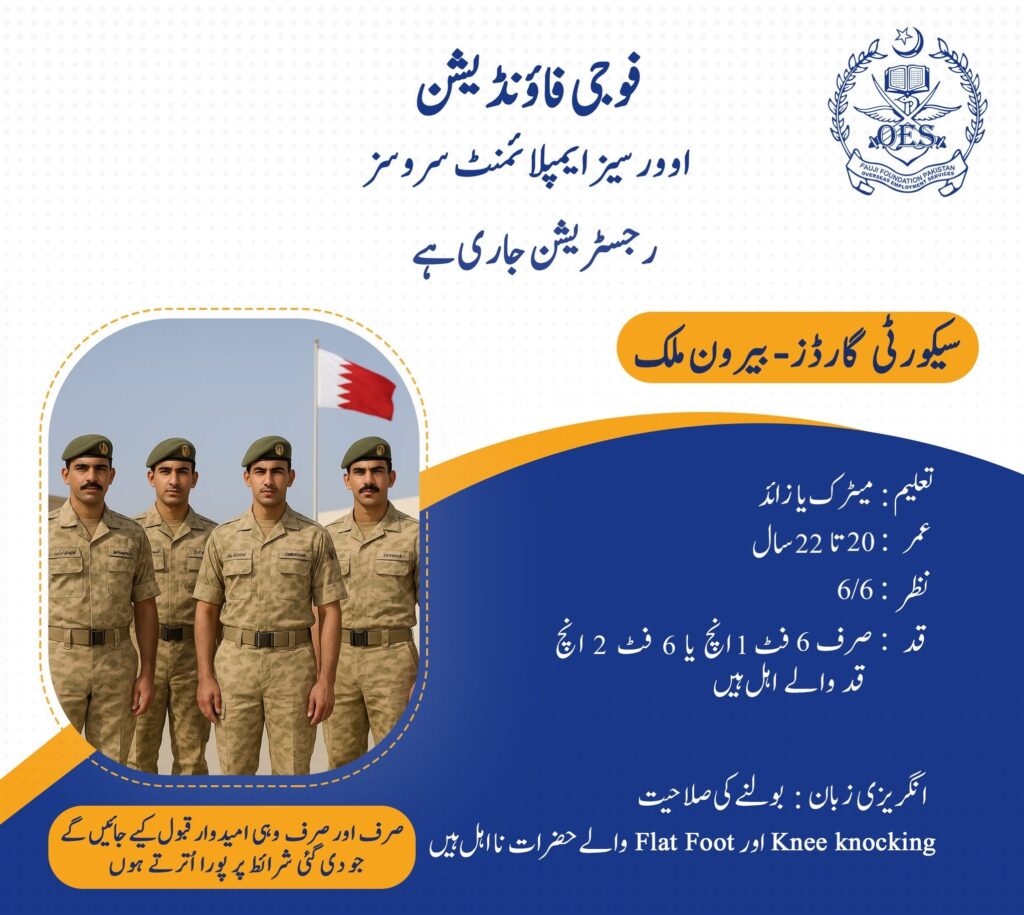 Bahrain Security Guard Jobs 2025 For Pakistani Male and Female Apply Online. Are you seeking an excellent career opportunity in the government sector in 2025? Bahrain Security Guard Jobs 2025 Online Apply has announced the latest job openings for the year 2025, providing exciting roles for job seekers across Pakistan.