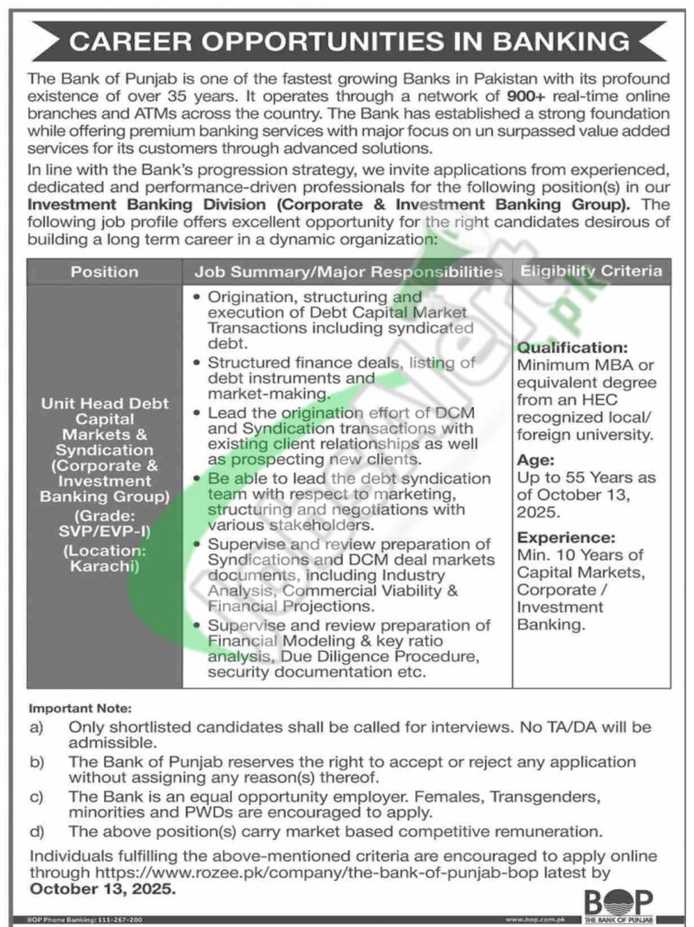 How to Apply for Bank of Punjab BOP Careers 2025