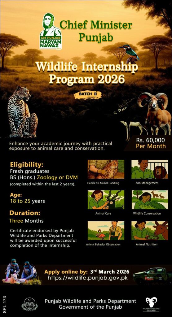 CM Punjab Wildlife Internship Program 2026 Online Apply For Pakistani Male and Female Apply Online. Are you seeking an excellent career opportunity in the government sector in 2026? CM Punjab Wildlife Internship Program 2026 Online Apply has announced the latest job openings for the year 2026, providing exciting roles for job seekers across Pakistan.