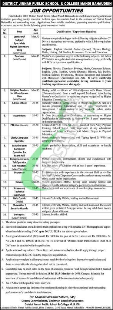 District Jinnah Public School Jobs 2025 - Romote Jobs Pakistan