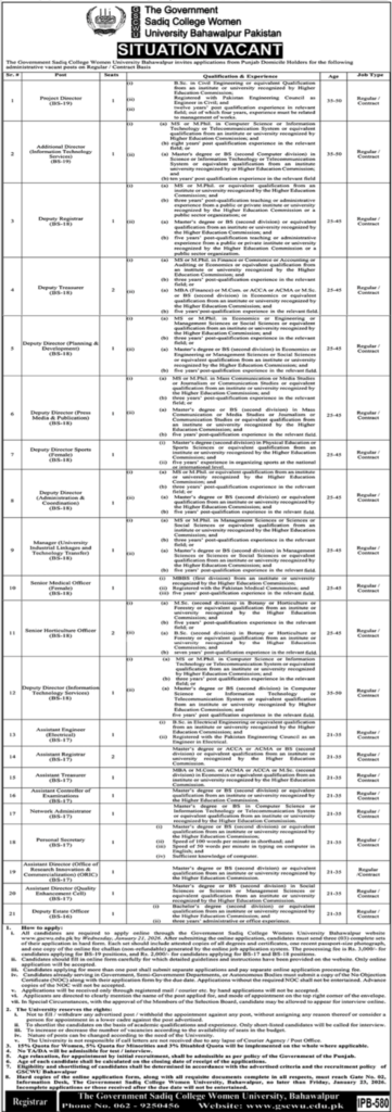 How to Apply for Government Sadiq College Women University Jobs