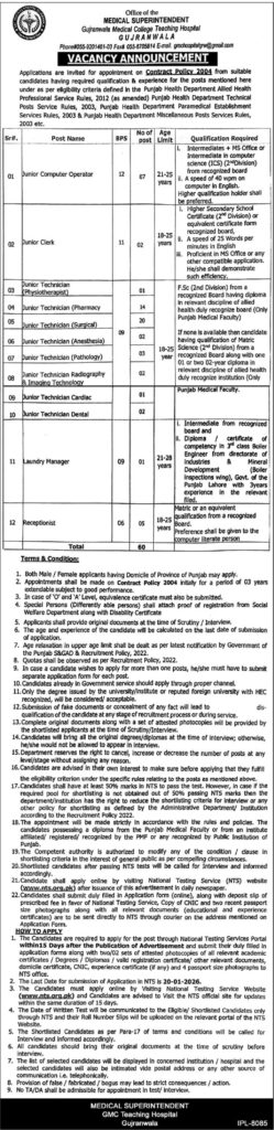| Department | Gujranwala Medical College Teaching Hospital Jobs 2026 |