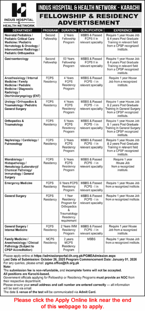 | Department | Indus Hospital Karachi Jobs |