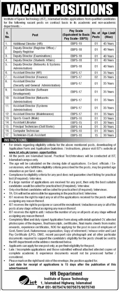 Institute of Space Technology IST Jobs 2025 Online Apply For Pakistani Male and Female Apply Online. Are you seeking an excellent career opportunity in the government sector in 2025? Institute of Space Technology IST Jobs 2025 Online Apply has announced the latest job openings for the year 2025, providing exciting roles for job seekers across Pakistan.