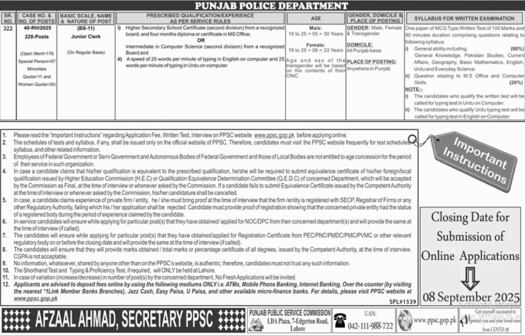 - Ensure your application, whether online or manual, is submitted before the last date: 08 September 2025. Late applications will not be considered.