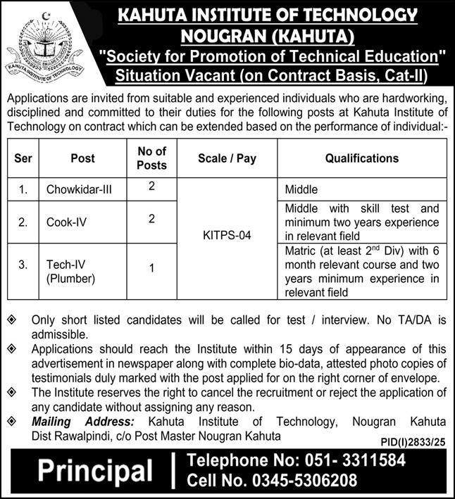 How to Apply for Kahuta Institute Of Technology KIT Jobs