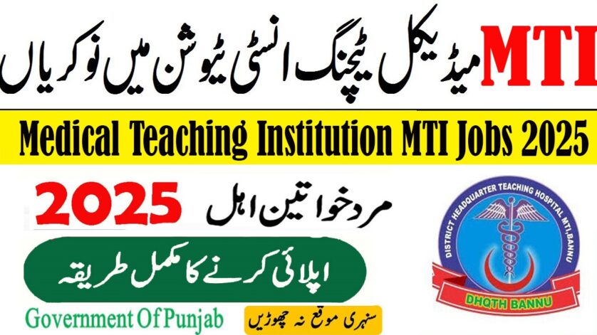 Medical Teaching Institution MTI Jobs 2025 For Pakistani Male and Female Apply Online. Are you seeking an excellent career opportunity in the government sector in 2025? Medical Teaching Institution MTI Jobs 2025 Online Apply has announced the latest job openings for the year 2025, providing exciting roles for job seekers across Pakistan.