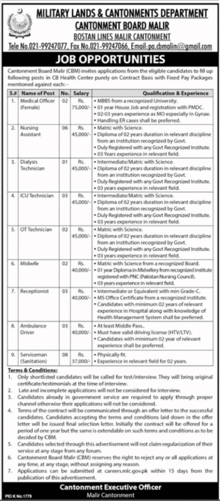| Department | Military Lands and Cantonment Department Jobs |
