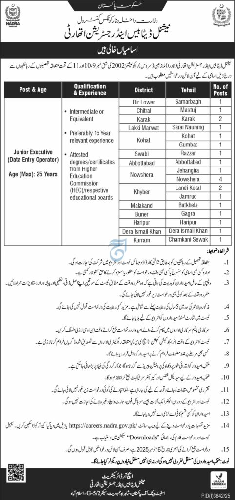 NADRA Data Entry Jobs 2025 For Pakistani Male and Female Apply Online. Are you seeking an excellent career opportunity in the government sector in 2025? NADRA Data Entry Jobs 2025 Online Apply has announced the latest job openings for the year 2025, providing exciting roles for job seekers across Pakistan.