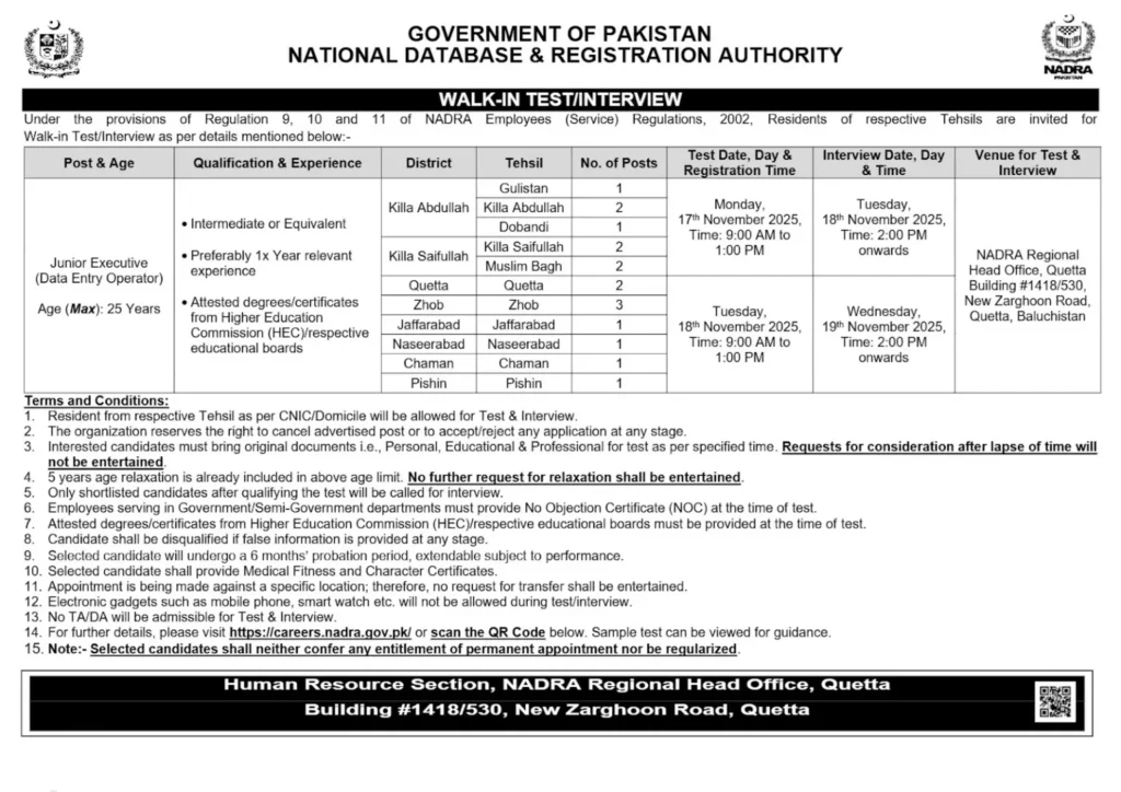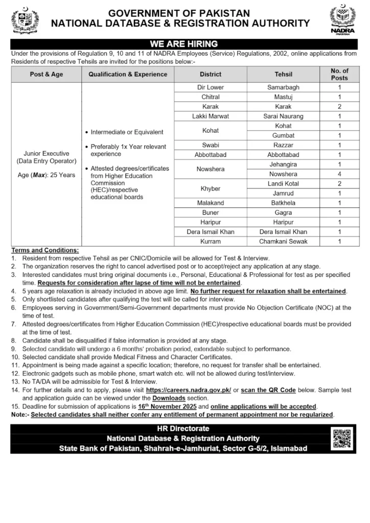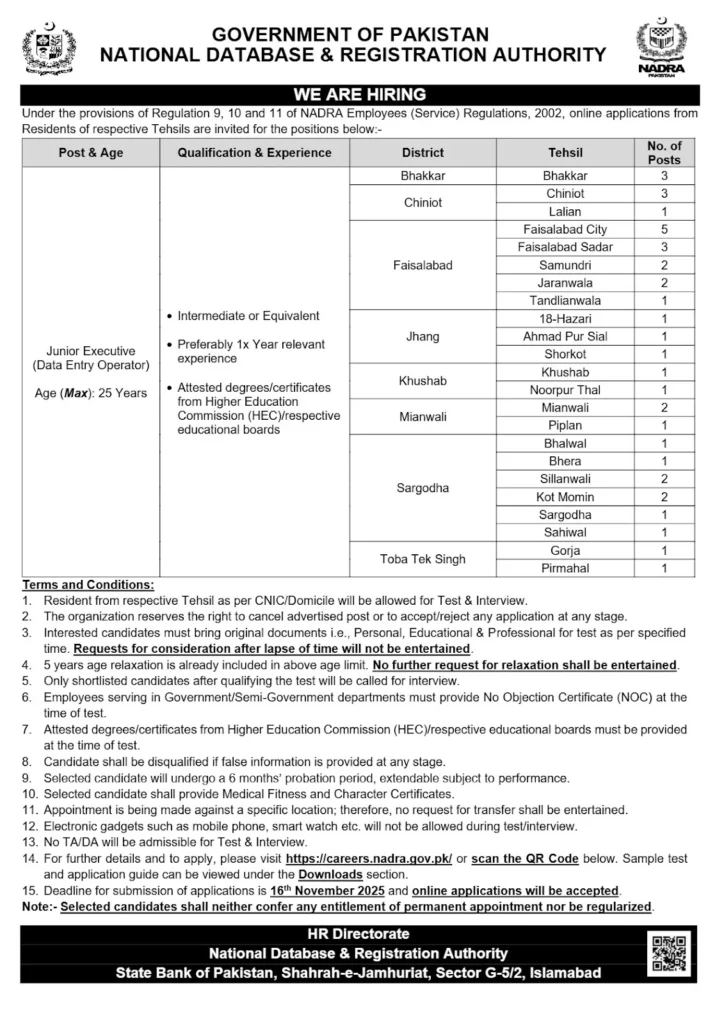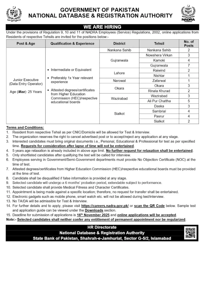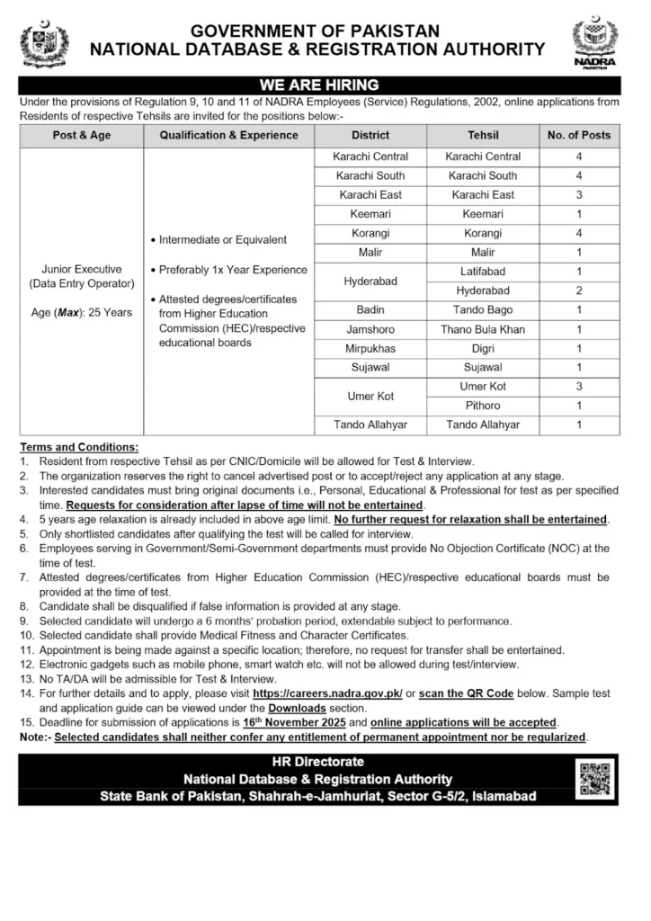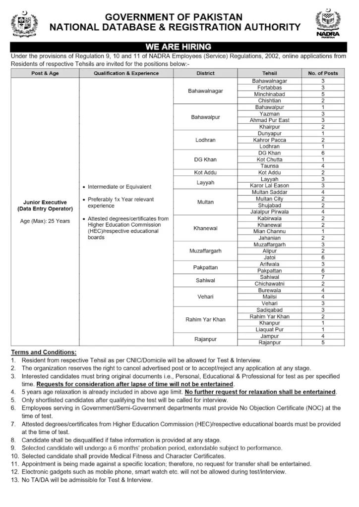 DepartmentNADRA Junior Executive Data Entry Operator Jobs
