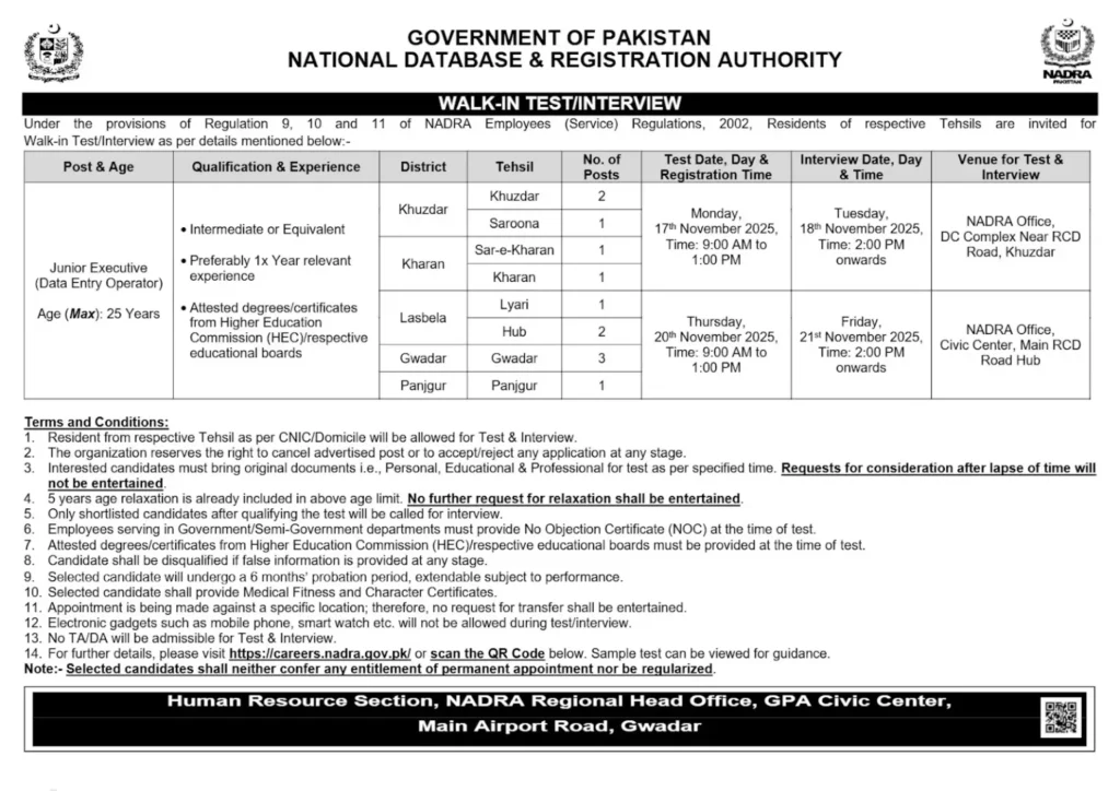 NADRA Junior Executive Data Entry Operator Jobs 2025 For Pakistani Male and Female Apply Online. Are you seeking an excellent career opportunity in the government sector in 2025? NADRA Junior Executive Data Entry Operator Jobs 2025 has announced the latest job openings for the year 2025, providing exciting roles for job seekers across Pakistan.