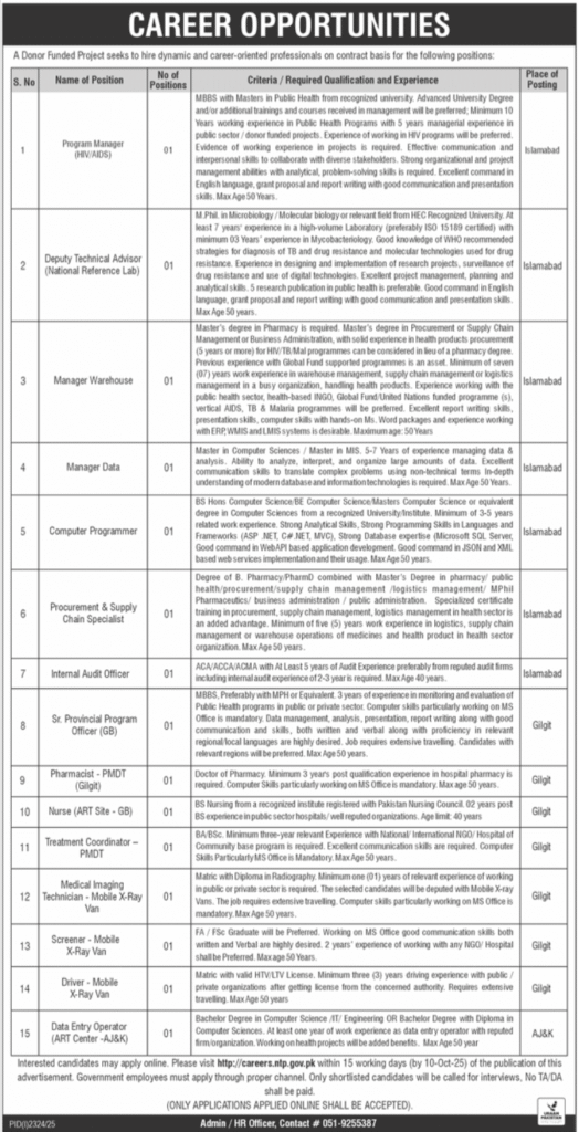 National TB Control Program Jobs 2025 For Pakistani Male and Female Apply Online. Are you seeking an excellent career opportunity in the government sector in 2025? National TB Control Program Jobs 2025 has announced the latest job openings for the year 2025, providing exciting roles for job seekers across Pakistan.