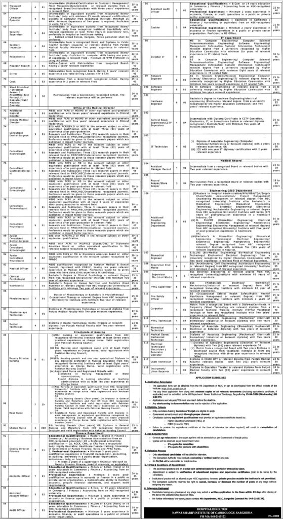 DepartmentNawaz Sharif Institute of Cardiology NSIC Jobs 2026
