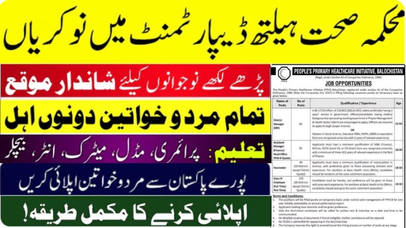 Peoples Primary Healthcare Initiative PPHI Jobs 2026 Apply Online For Pakistani Male and Female Apply Online. Are you seeking an excellent career opportunity in the government sector in 2026? Peoples Primary Healthcare Initiative PPHI Jobs 2026 Online Apply has announced the latest job openings for the year 2026, providing exciting roles for job seekers across Pakistan.