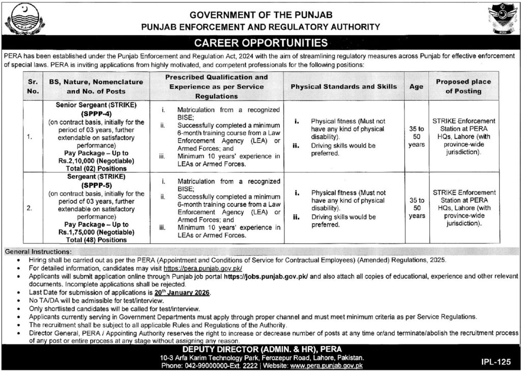 How to Apply for PERA Force Sergeant Driver Jobs 2026
