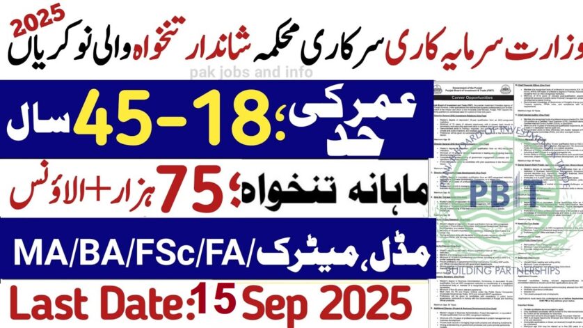 Punjab Board of Investment & Trade PBIT Jobs 2025 For Pakistani Male and Female Apply Online. Are you seeking an excellent career opportunity in the government sector in 2025? Punjab Board of Investment & Trade PBIT Jobs 2025 Online Apply has announced the latest job openings for the year 2025, providing exciting roles for job seekers across Pakistan.