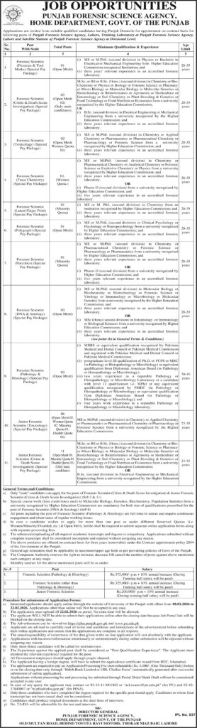 How to apply for Punjab Forensic Science Agency PFSA Jobs 2026