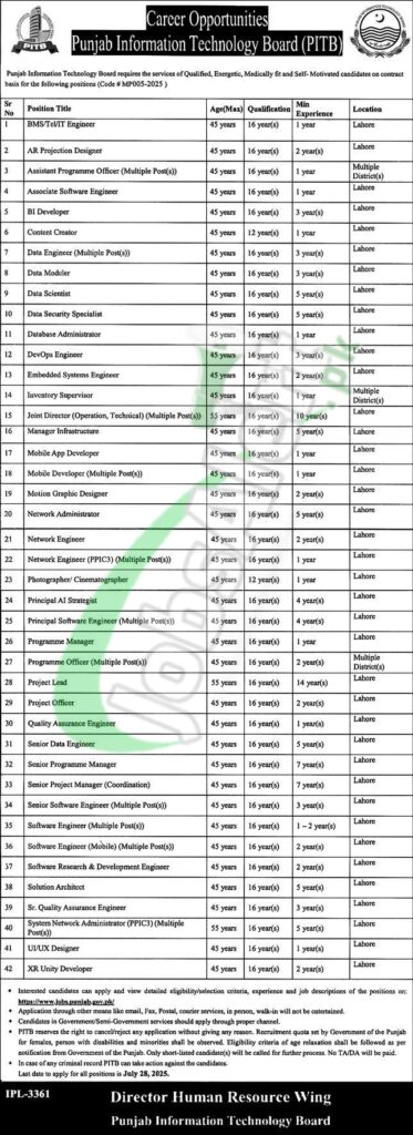 | Department | Punjab Information Technology Board Jobs 2025 |