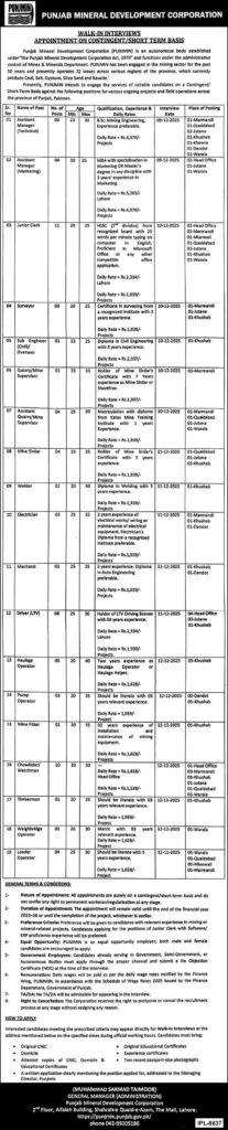 Punjab Mineral Development Corporation PMDC Jobs