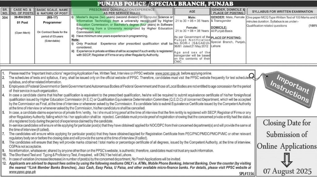 - Ensure your application, whether online or manual, is submitted before the last date: 07 August 2025. Late applications will not be considered.