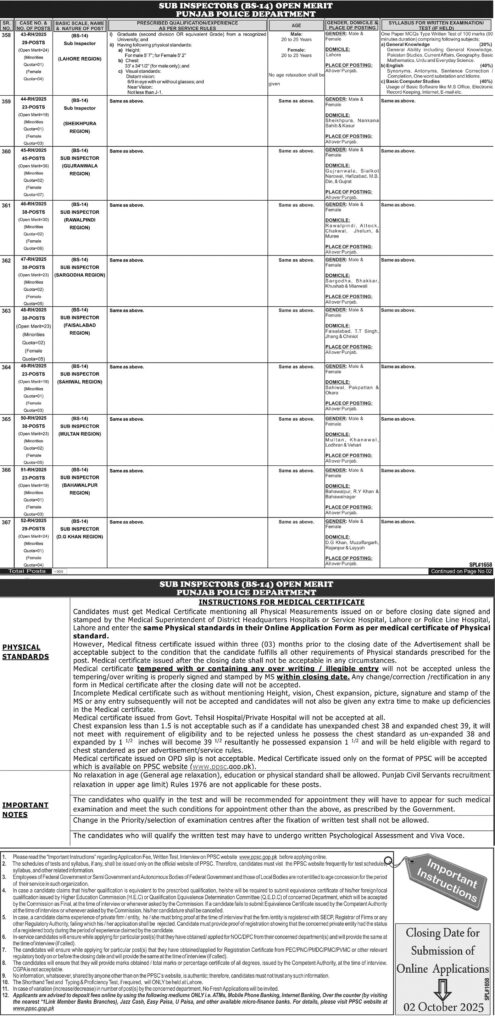 | Department | Punjab Police Sub Inspector Jobs via PPSC |