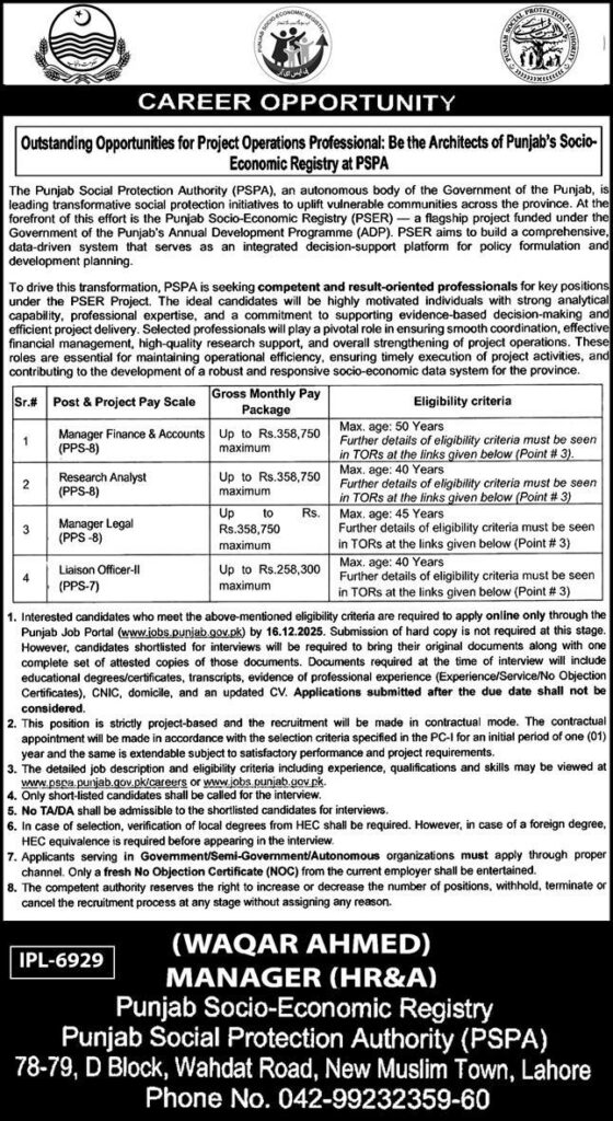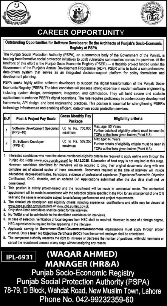 Punjab Social Protection Authority PSPA Jobs 2025 For Pakistani Male and Female Apply Online. Are you seeking an excellent career opportunity in the government sector in 2025? PSPA has announced the latest job openings for the year 2025, providing exciting roles for job seekers across Pakistan. Whether you’re male or female and meet the eligibility criteria, PSPA offers you the chance to secure a stable and rewarding jobs.