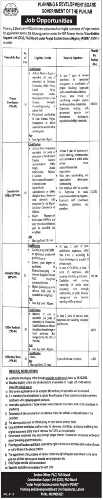 Department | Punjab Socio Economic Registry PSER Jobs |