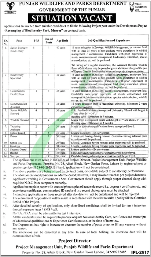 Punjab Wildlife and Parks Department Jobs Online Apply Last Date - Romote Jobs Pakistan