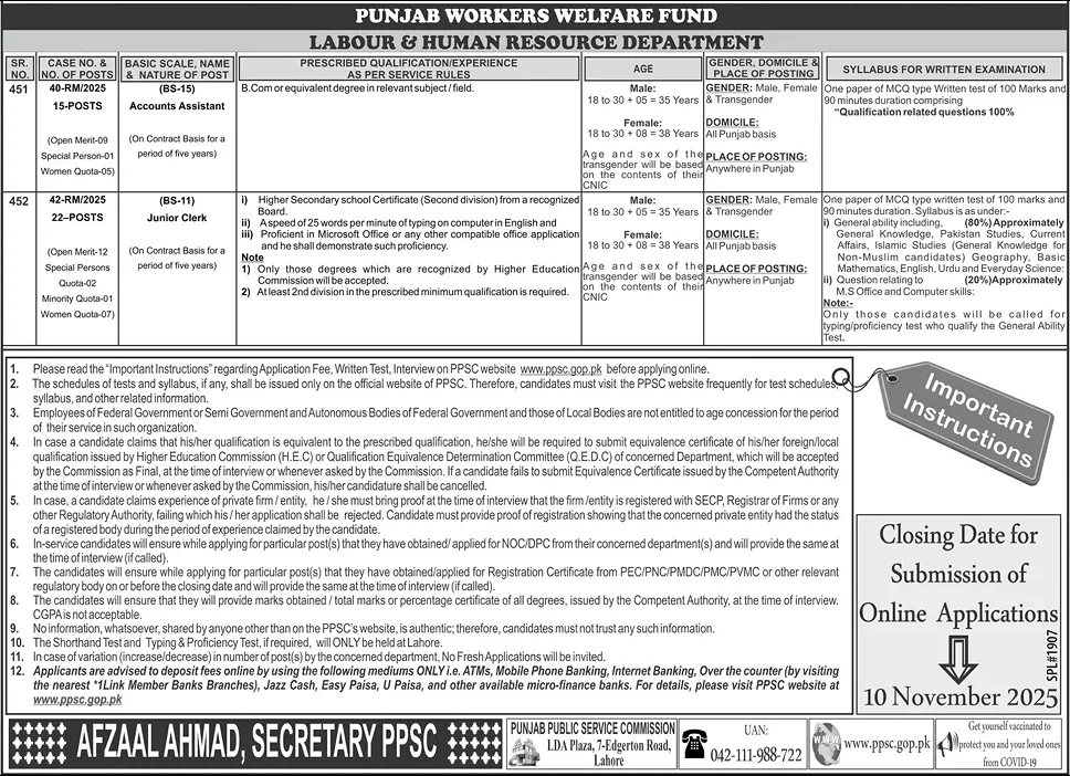 How to Apply for Punjab Workers Welfare Fund Jobs