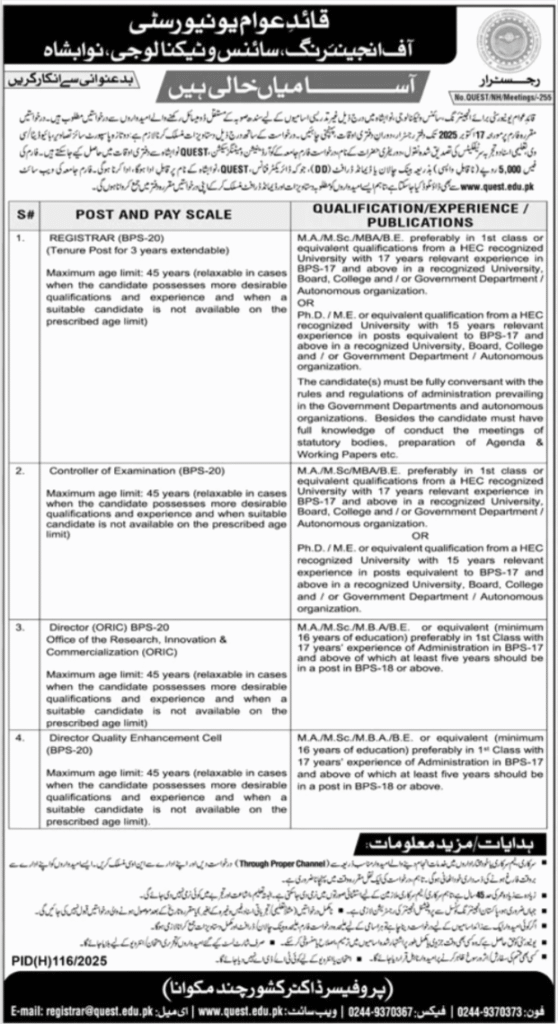 How to Apply for Quaid E Awam University Of Engineering Science QUEST Jobs