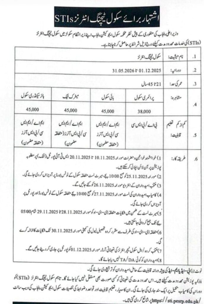 | Department | School Teacher Interns STIs Jobs 2025 Punjab Workers Welfare Fund PWWF Jobs 2025 |