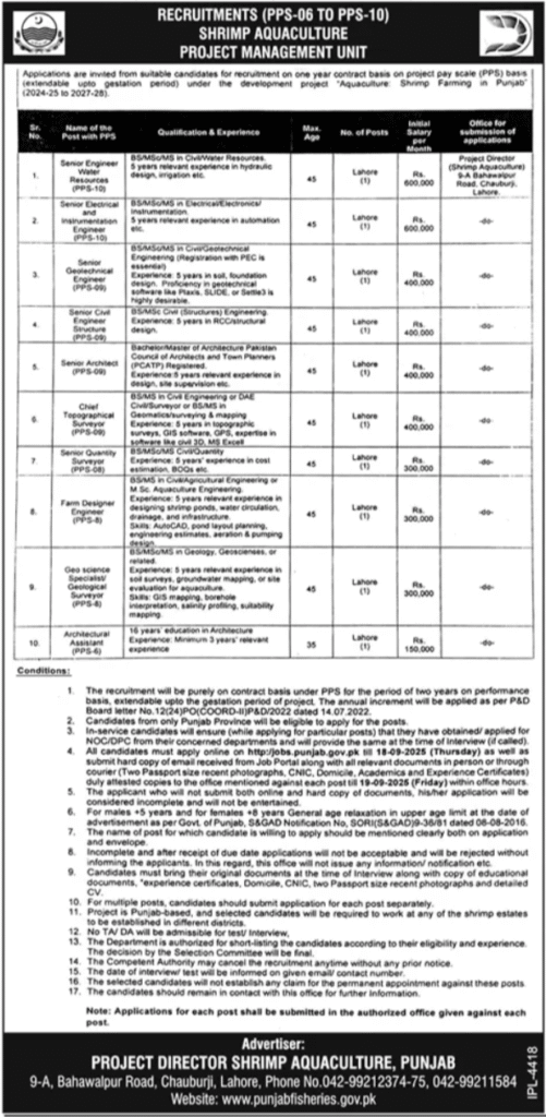Shrimp Aquaculture Project Management Unit Jobs 2025 For Pakistani Male and Female Apply Online. Are you seeking an excellent career opportunity in the government sector in 2025? Shrimp Aquaculture Project Management Unit Jobs 2025 Online Apply has announced the latest job openings for the year 2025, providing exciting roles for job seekers across Pakistan.