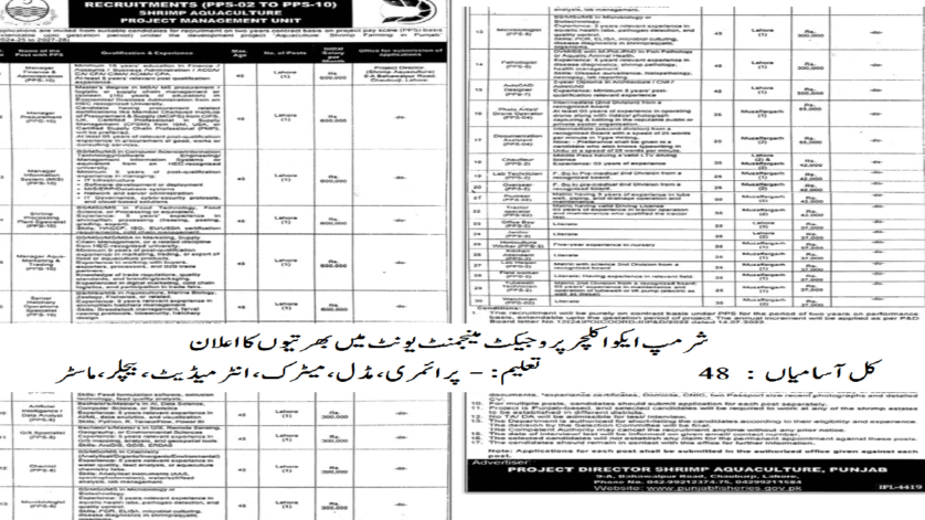 Shrimp Aquaculture Project Management Unit Jobs 2025 For Pakistani Male and Female Apply Online. Are you seeking an excellent career opportunity in the government sector in 2025? Shrimp Aquaculture Project Management Unit Jobs 2025 Online Apply has announced the latest job openings for the year 2025, providing exciting roles for job seekers across Pakistan.