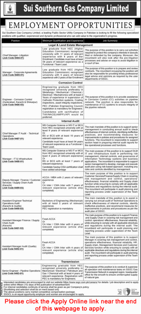 | Department | Sui Southern Gas Company SSGC Jobs |