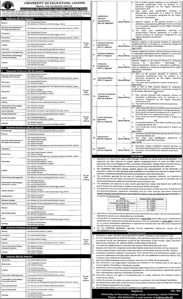 | Department | University Of Education Lahore Jobs |